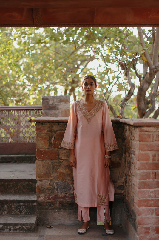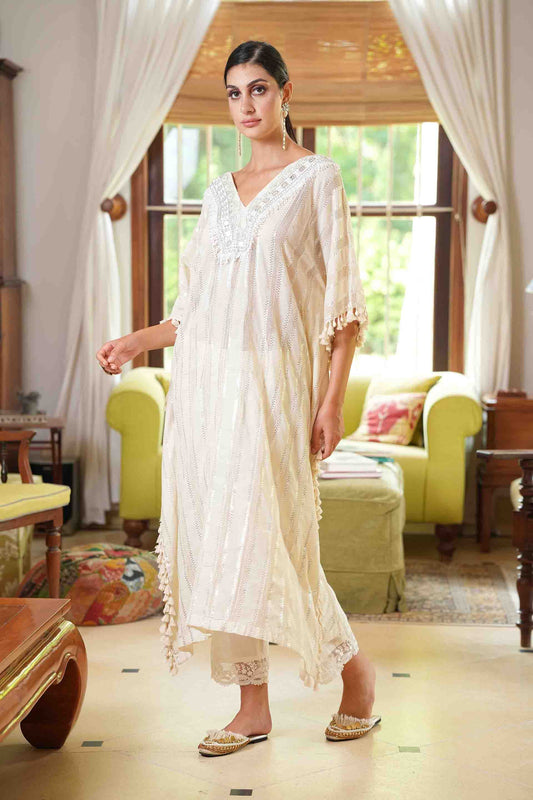 Vidya Balan’s Crushed ivory set with neckline embroidery