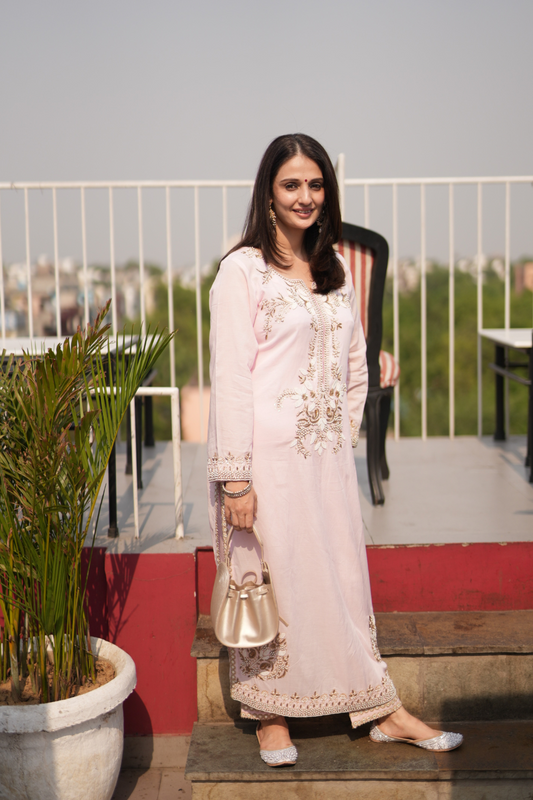 Blush Dori embroidered kurta pants and dupatta
