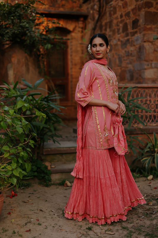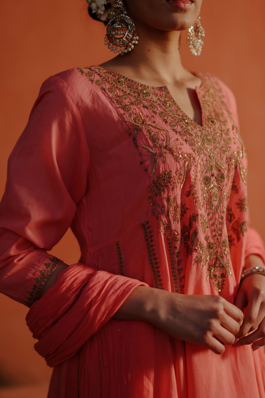 Coral Kurta with zari embroidery
