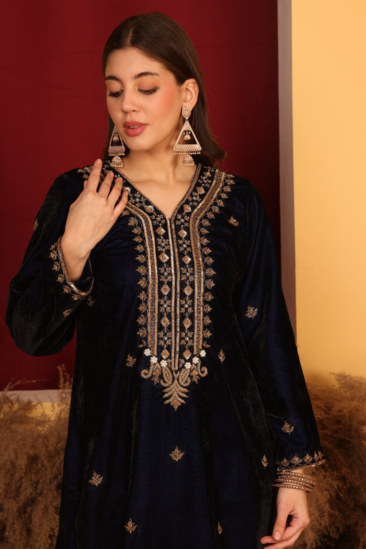 Chic Black Velvet Kurta Set